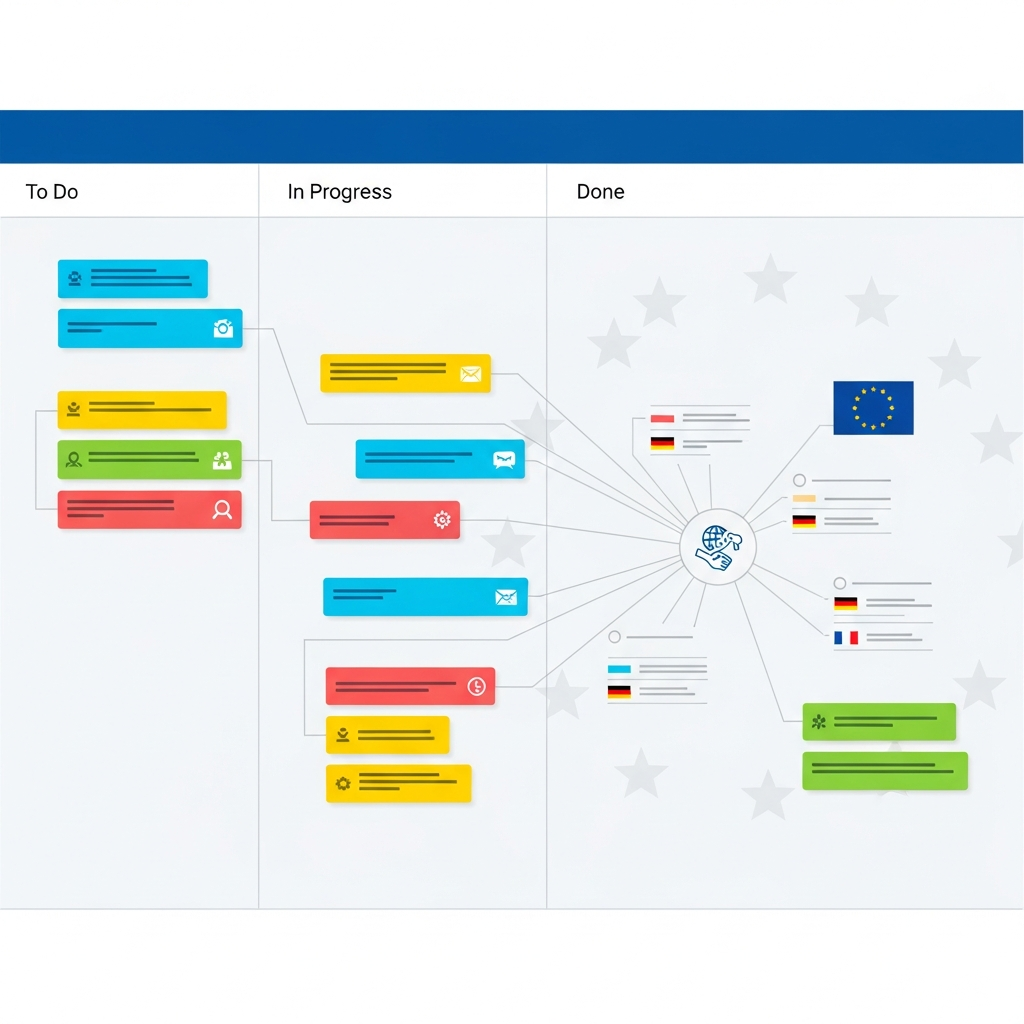 Trello changed how millions of people organize work. Its drag-and-drop Kanban boards are iconic, and for small teams that just need a simple visual workflow, it's hard to beat. But Trello has limits — and for European companies, some of those limits are legal, not just functional.